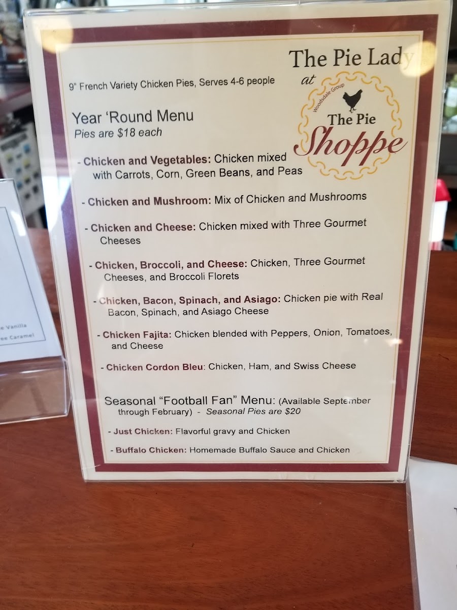 savory French style gourmet pies, brought to you by The Pie Lady; choice of two sides